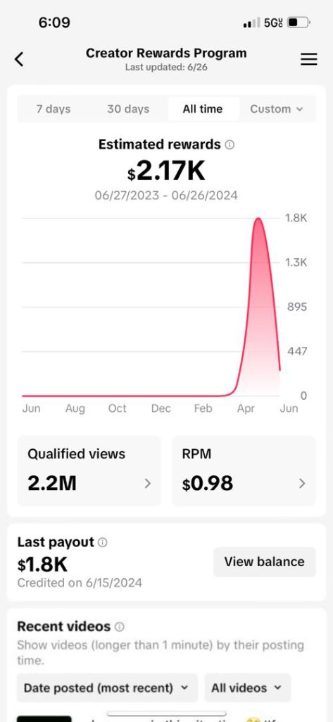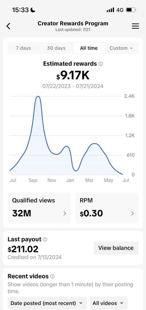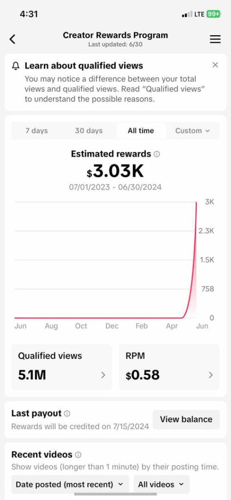 $3.o3k made in 30 days inside the tiktok monetization program.