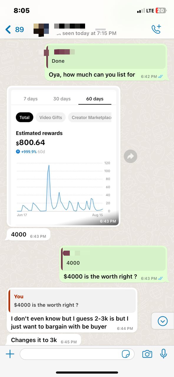 We bascially decided to make money from all angles of tiktok pictures would be below. First image revealing the first sale ever made from tiktok digital product created in few minutes with Ai, and second showing how much we sell a single monetized account, imagine selling just 5 per month (1 million naira)